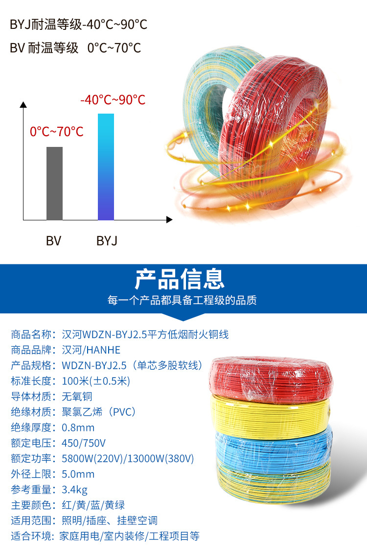 WDZN-BYJ2.5平方輻照無鹵低煙A級耐火家裝電線插座線