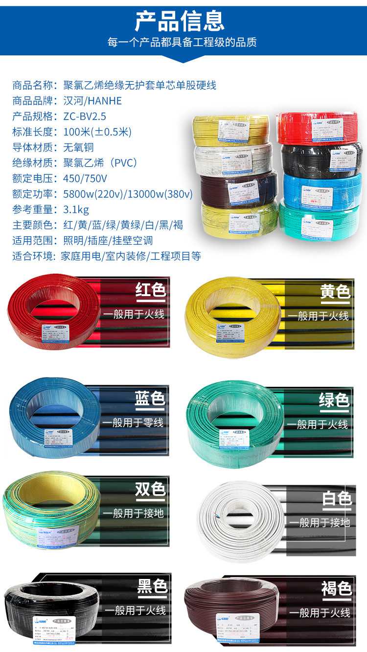 漢河電線電纜ZC-BV2.5平方 銅芯國標家裝電線 單芯單股硬線足米 2020-08-10 本文被閱讀